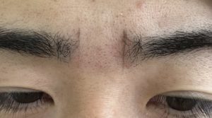眉頭が四角くなって貼ってつけたような眉毛になります。